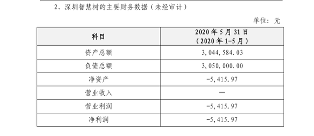 在公告中,开云手机站官方版网站登录入口-开云(中国)科技披露了深圳智慧树的主要财务数据(未经审计),如下图所示。